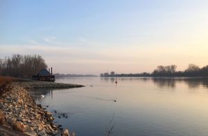 Und natürlich die wogenden Gezeiten manchen Meeres, noch im Rückblick danke ich mit steigendem Augenwasser der Gunst dieser Urgewalt. Meine Unvernunft scheint unentschuldbar und ist doch mit allen Wassern gewaschen worden. Rein bin ich noch lange nicht. Aber im Reinen mit meinen Verheißungen. Mit dem Alter wird die Welt kleiner, so heißt es. Aber das glaube ich nicht. Wir probieren fremde Wasser, testen unsere ureigenen Deltas aus und landen schlußendlich doch am eigenen Gestade. Ein Mausmeer vielleicht. Schon so oft vorbeigefahren, nicht zur Kenntnis genommen. Dann ein altes Buch, eine Recherche. Und ein Umriss eines begradigten Rheinarmes. Warum nicht? Wir fahren hin und entdecken einen Ort, der uns wahrlich vertraut scheint.