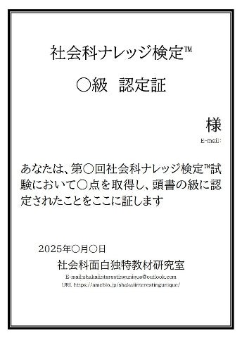 の資格(称号)を授与します。今回は第3回ということで、第1回・第2回を受験された方々の中には、「社会科ナレッジマスター™」の対象となる方もおられます。