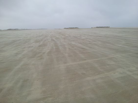 „… meanwhile in the Sahara or the Australian outback….. … which is not true. This was a bad joke: The picture was taken on a real cold, rainy, and windy day on the beach of a Danish island – driving sand from the side puts you in danger to lose orientation“. Bei der Insel handelt es sich übrigens um die südlichste Nordseeinsel Dänemarks: Rømø.
