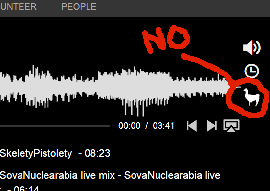 To help you avoid this llama, we’ll tell you it’s in the upper right corner of any Internet Archive item that has a music player in it. This means the Grateful Dead recordings, radio airchecks, network record labels like monotonik, and all manner of podcasts now have the capability to be turned into a Winamp-like player that becomes your new default.