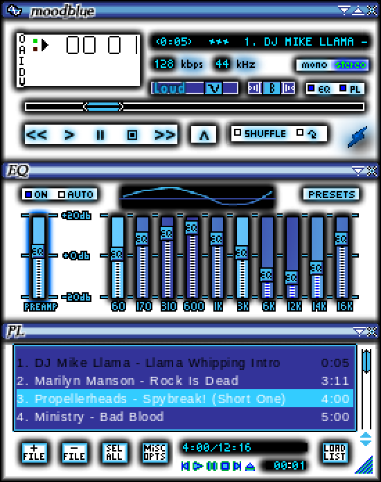(If, by mistake, you click on the Llama, clicking on it again will turn off the Webamp player and restore the default player.)