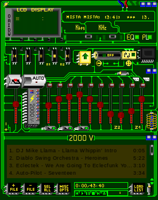 It would be amazing if someone could provide a link or submit the skin to the archive, if you have it. The color theme is base grey with buttons and framing in black, and the display areas having a yellow-orange base. When minimized the leftmost part of the player says “K-GEN/X”. The primary reason I never switched after I came upon it, is that the interface when minimized (which was how I used it 95% of the time) was pretty, non-flashy and easy to read, unlike the vast majority of skins which failed in this regard.