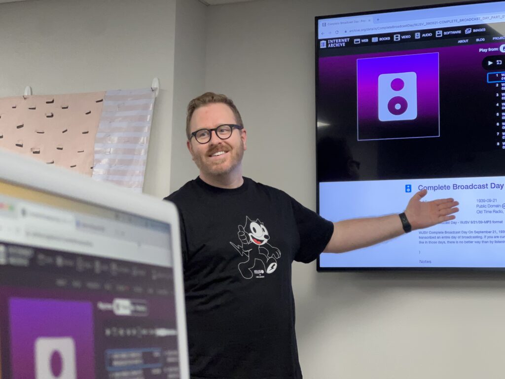 Finally, in keeping with this year’s World Radio Day theme related to AI, the college radio collection has been enhanced by an AI-generated transcription tool within the media player of select audio items. This means that not only can one listen to recordings from college radio stations, but one can also read transcripts from radio shows, interviews, oral histories, and more. Audio with AI-generated transcripts in the DLARC College Radio collection includes: