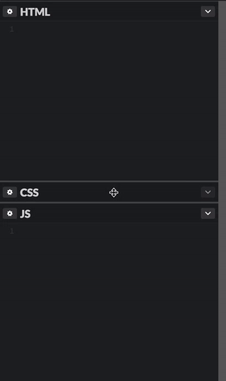 By default, the Pen editor is split up into three panels: HTML, CSS, and JS. Each panel takes up a third of the width or height of the screen, depending on the layout. You can resize, maximize, or collapse each panel to give yourself more space to write your code.