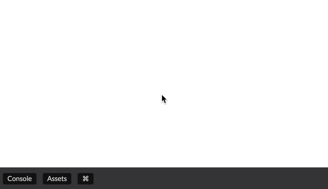 Our interactive JavaScript console is closed by default. You can open the console from the “Console” button at the bottom of the editor, and close it by clicking the “X” button at the top of the console window.