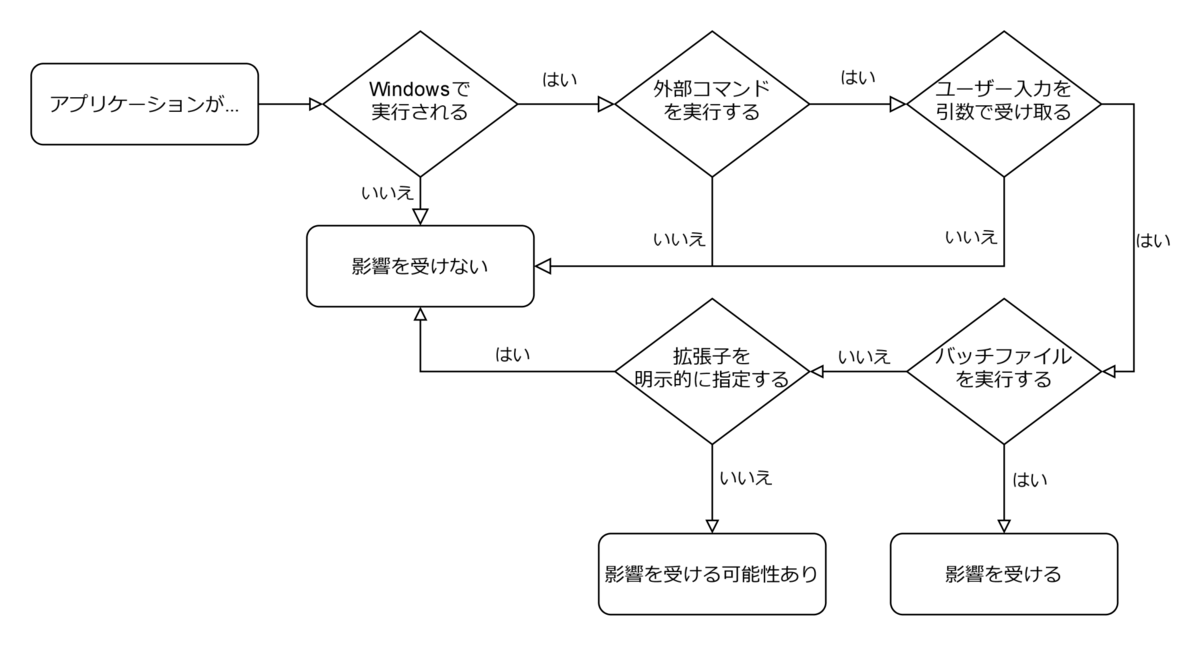 これらの挙動が悪用されると、任意コマンド実行が可能になる恐れがあります。 みなさんのアプリケーションがこの脆弱性の影響を受けるかどうか判断できるようにフローチャートを作成したので、影響を受けるかどうかわからない場合はAppendix Aを、影響を受けるプログラミング言語の状況についてはAppendix Bを参照してください。