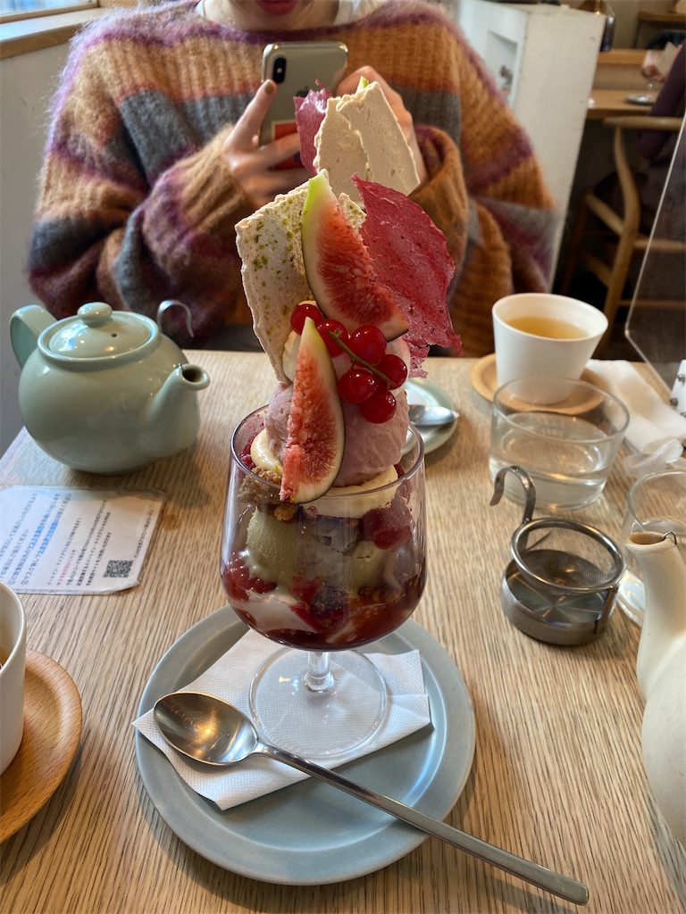 id:umimer)さんもパティスリー ビヤンネートルで「10月の季節のパフェ」を食べたことをつづっています。その日友人が着ていたニットの色合いが、イチジクとピスタチオのパフェに似ていたことで盛り上がったそうです。