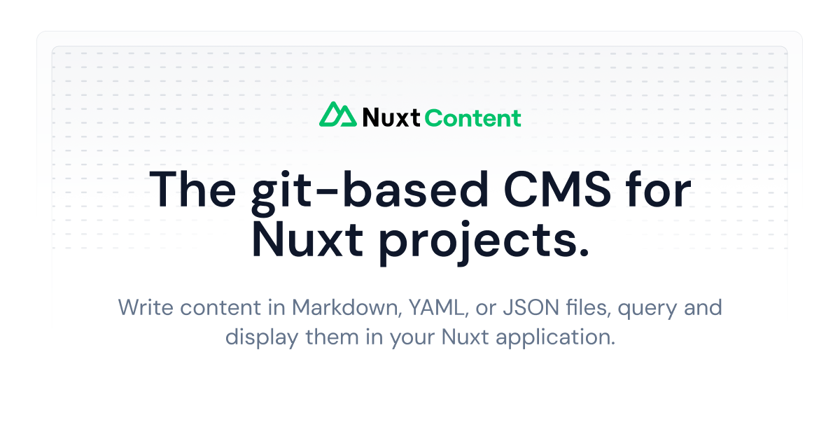 Nuxt Content is a module for Nuxt that provides a simple way to manage content for your application, within your git repository. It allows developers to write their content in Markdown, YAML or JSON files and then query and display it in their application.
