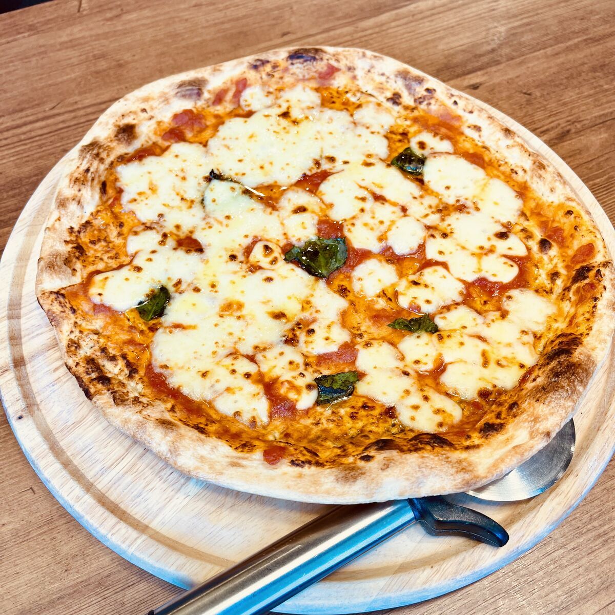 ピッツァマルゲリータは税抜540円で、税込でも594円ですがなかなかの大きさ。