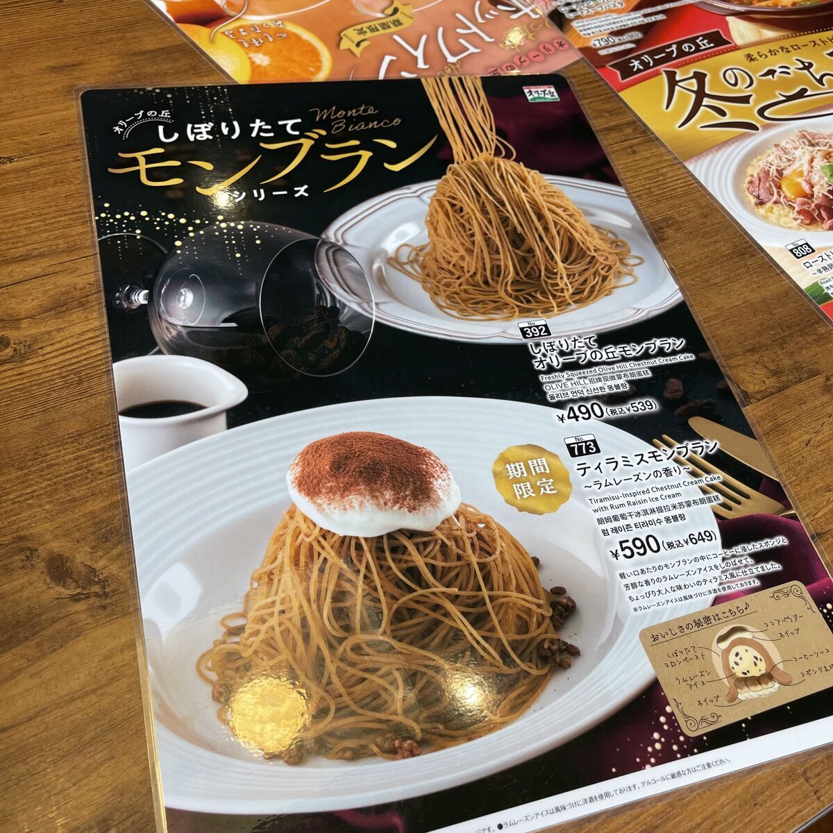 しぼりたてオリーブの丘モンブラン、サイズはわかりませんがこちらも絞り出し系のモンブランとしてはかなりのお手頃価格!