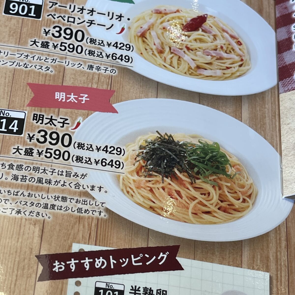 ジェノベーゼには大盛りオプションはなくこちらは税抜590円でした。