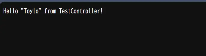 そしてまたプロジェクトを実行して、「http://localhost:8000/Test?name=Toylo」をブラウザで実行してみると、以下のようにクエリパラメータが受け渡されていることが分かるかと思います。