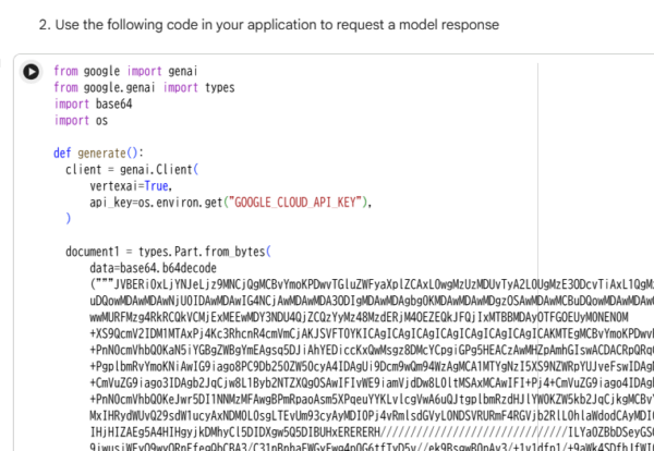 この機能を活用すると、GeminiがPythonコードを自動生成し、特定の領域をクロップ(切り抜き)したり、ズームしたりといった
