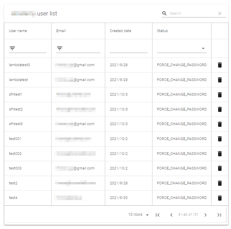 ゴミ箱アイコンをクリックするとそのユーザを削除するモーダルウィンドウを呼び出すようにしています。