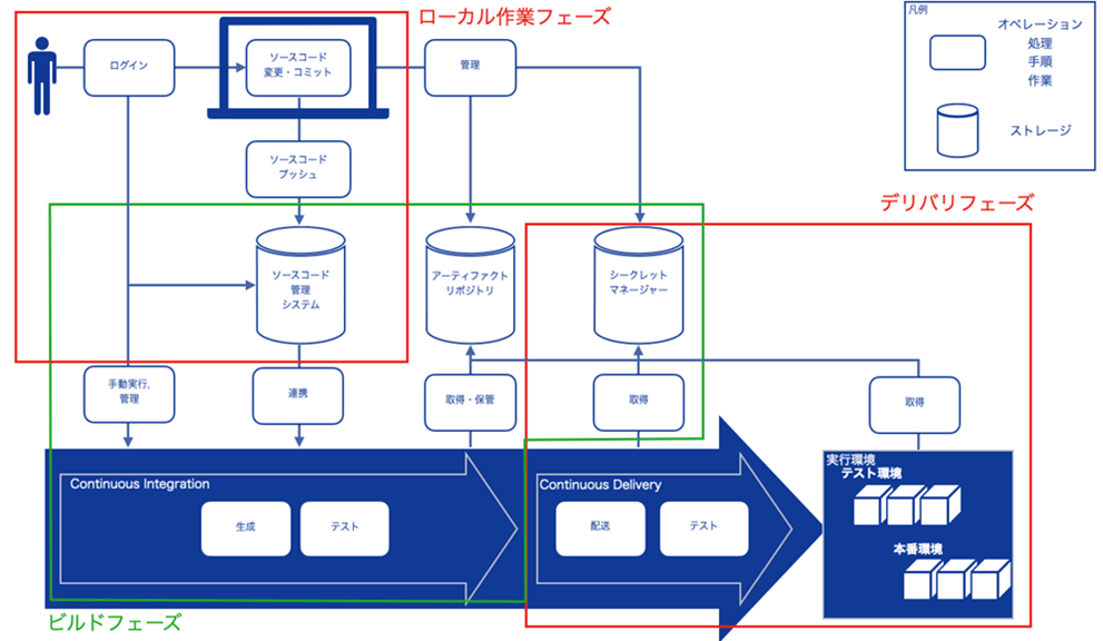 デジタル庁レポートを参考に、CI/CDパイプラインを用いた実行環境への配備までの各フェーズを説明します。