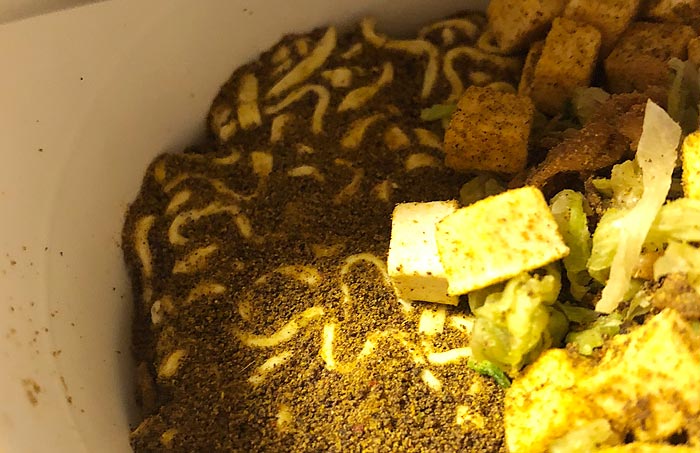 また、このゴロゴロと入ったチーズ風キューブも印象的といったところ!数もけっこう入っていますね!!