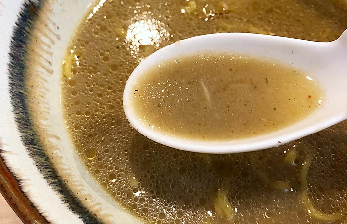ではさっそく一口食べてみると…ぁあ、美味しいですね!この動物系の旨味がしっかりと利いているにもかかわらず後味すっきりとしたスパイシー感が絶妙なバランス・印象的で、基本的にさらっとしたスープではあるんですが、物足りなさを全く感じさせない旨味といい…飽きの来ない後味の良さといい、大袈裟に言うとずっと食べていられるような旨味と香辛料がうまく交差しています!