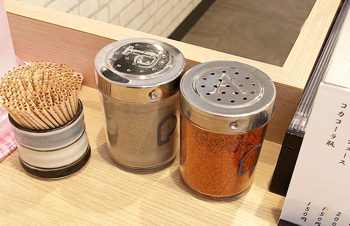 ちなみにテーブルに置かれている調味料は、ご覧の通り一味、胡椒のみとなっていて、こちらもまたシンプルにまとまめられています!