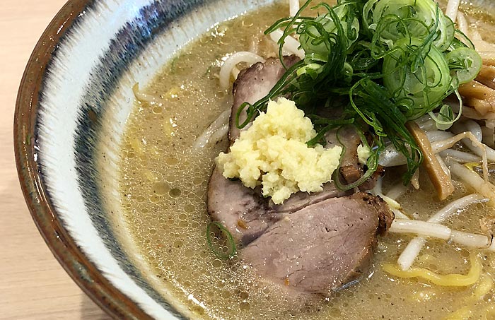 そして、札幌ラーメンでよく聞く“純すみ系”・“村中系”に多く見られるこのチャーシューの上に添えられた“おろし生姜”はもちろんそのままいただくのではなく、スープを楽しみながら少しずつ溶かして楽しむもので、この後味すっきりとした香味野菜による具材・ワンポイントが後々利いてくるんですよね!