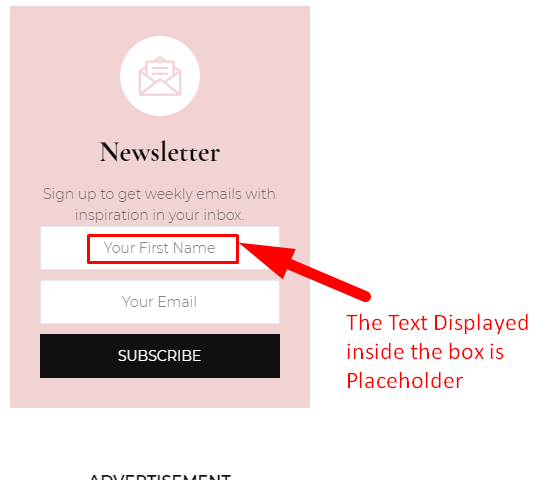 - Enter the placeholder for Email and Name. Placeholder is the text displayed inside the input box.
