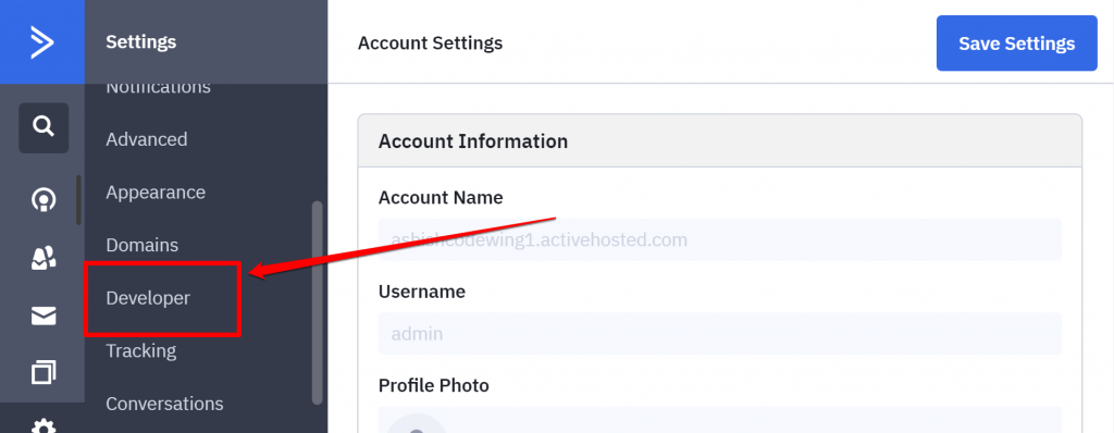 - You get inside the dashboard of your ActiveCampaign account. Click on the Settings button in the left sidebar.