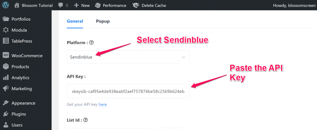Configuring BlossomThemes Email Newsletter With Sendinblue