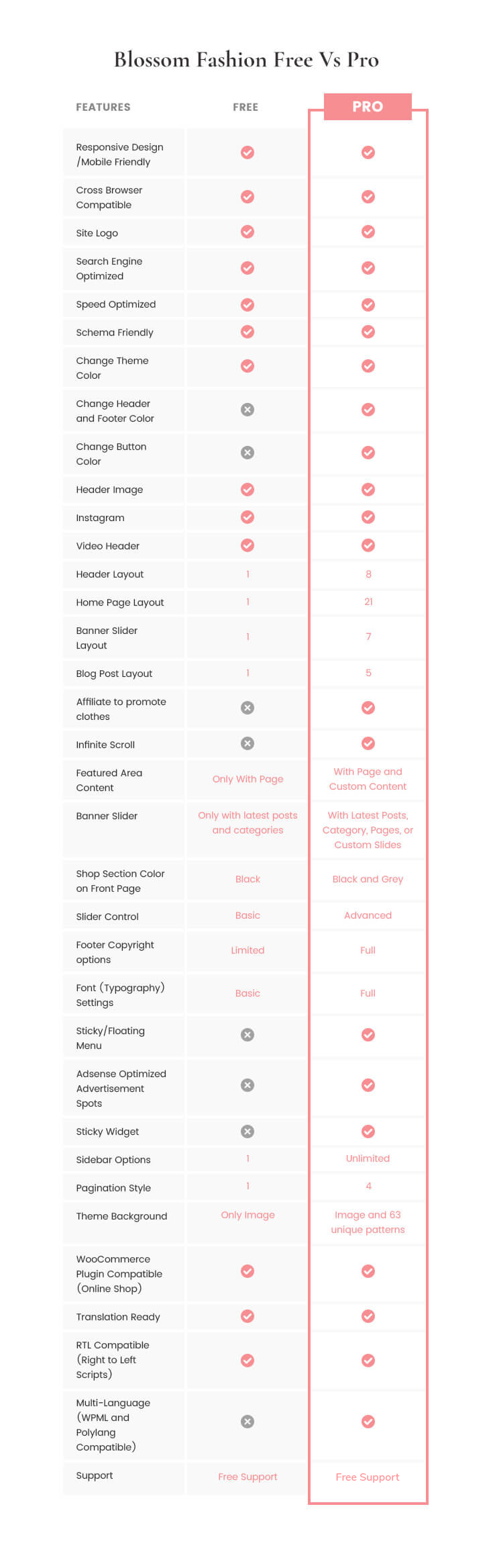 It is also Schema friendly, which is an important ranking factor as per Google’s recent announcement. With Blossom Fashion Free, you will always have an edge over your competitors.