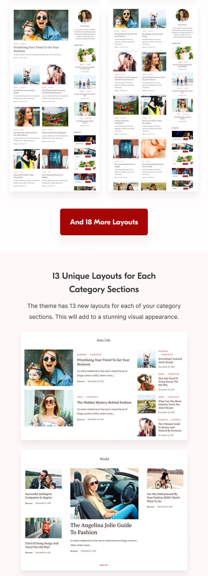 13 Unique Layouts for Each Category Sections