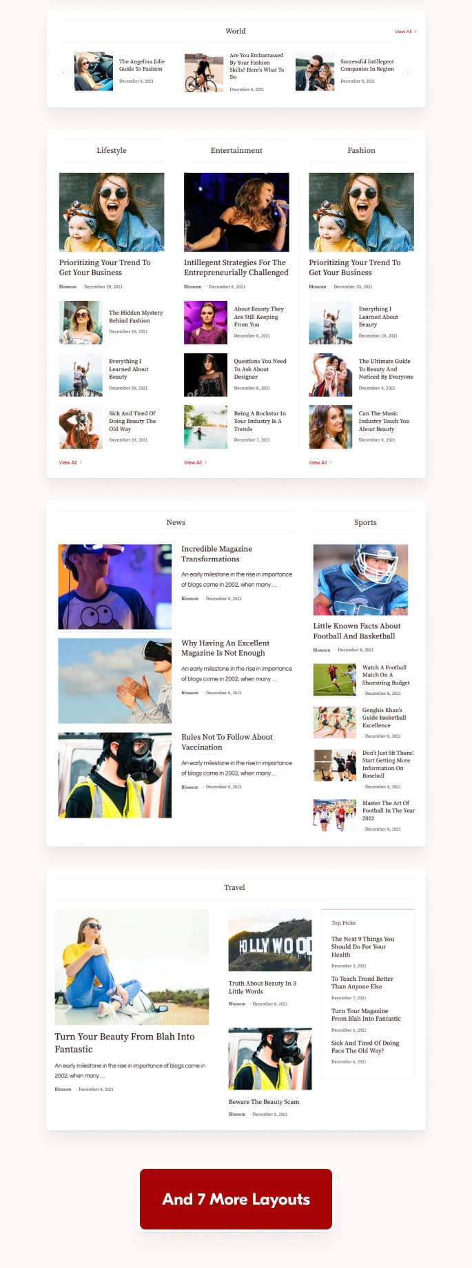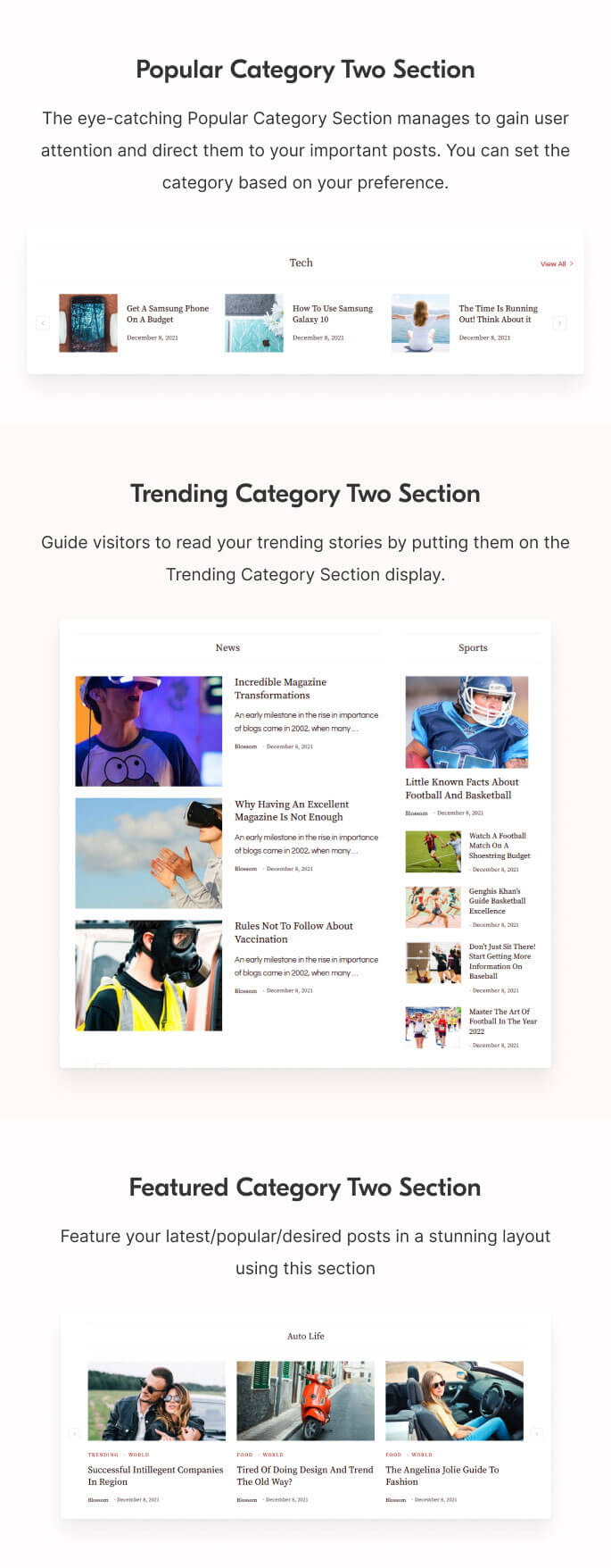 The theme has 13 new layouts for each of your category sections. This will add to a stunning visual appearance.