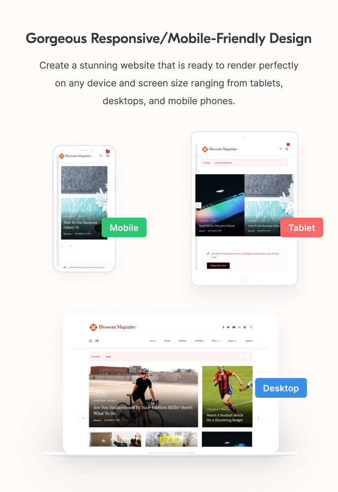 Using a decent combination of fonts, typography, colors, and other readability factors, Blossom Magazine Pro ensures an optimum browsing experience for your readers.