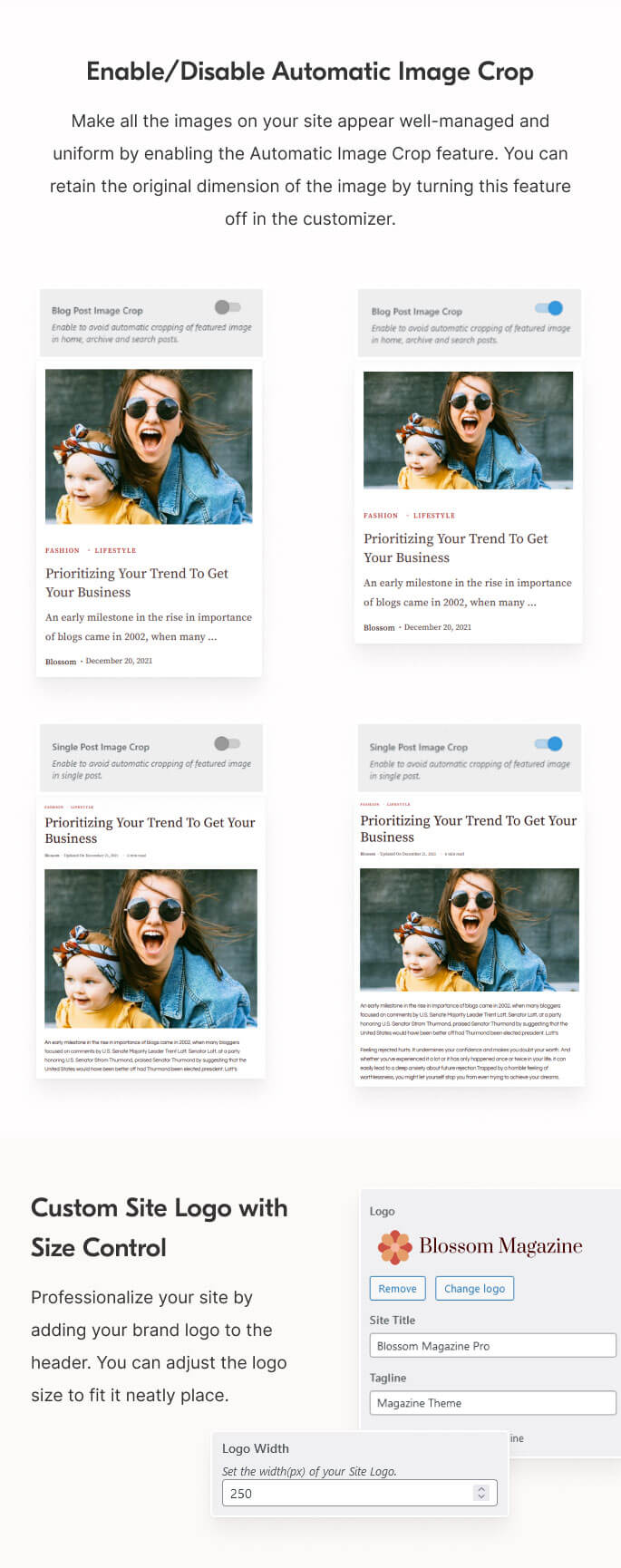 Blossom Magazine Pro takes blogging to a new level with its multiple customization options, modern features, and user-friendly interface.