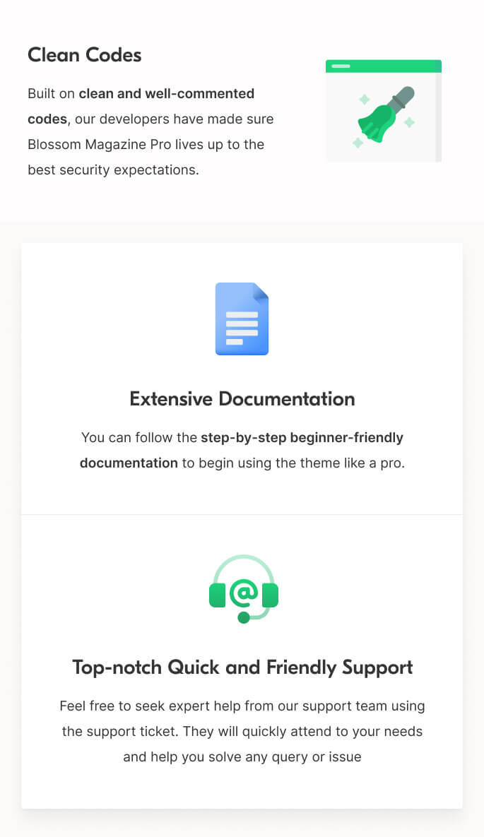 Built on clean and well-commented codes, our developers have made sure Blossom Magazine Pro lives up to the best security expectations.