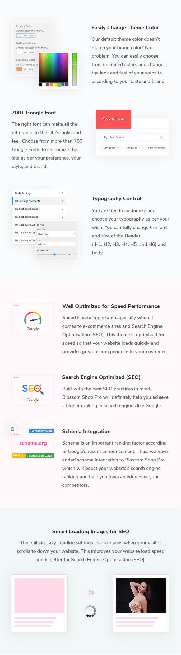 Built with the best SEO practices in mind, Blossom Shop Pro will definitely help you achieve a higher ranking in search engines like Google.
