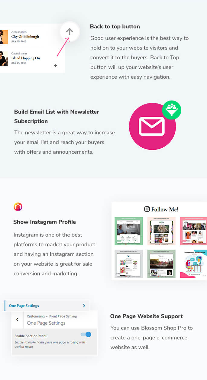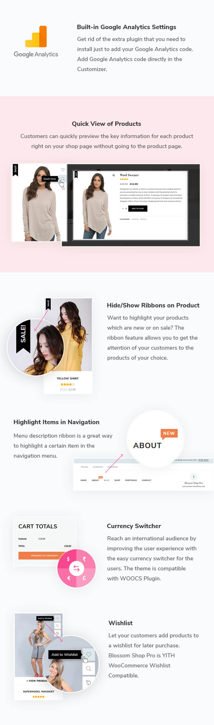 Blossom Shop Pro is made from the ground up to work with WooCommerce, the most popular WordPress plugin to create an online store. That means it’s optimized for the plugin to ensure that all the features and functionality of your stored items are presented in the best possible manner.
