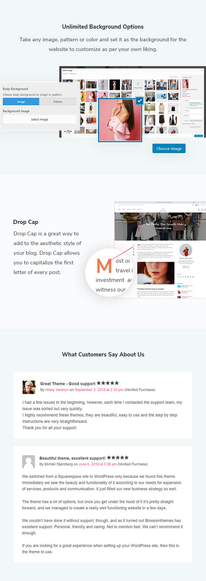 I switched to Blossom Themes early on in my blogging career. They were always so helpful. My blog has since become more of a e-commerce platform. The switch was easy enough with Blossom Shop Pro! The theme itself is great and the customer service is amazing
