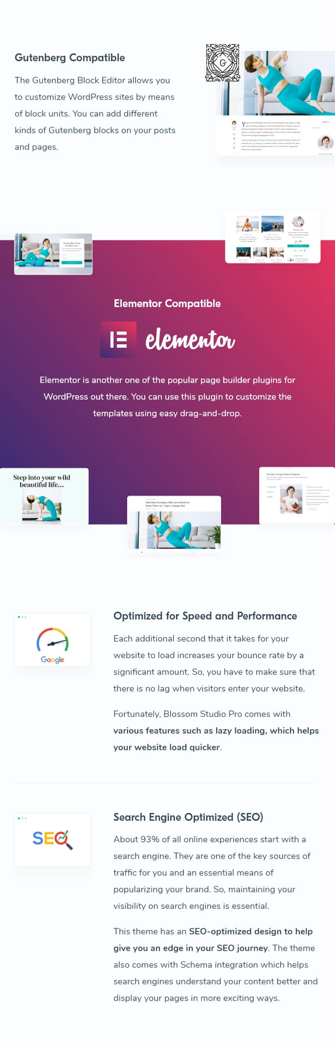 Blossom Studio Pro is a truly powerful product with a plethora of features and theme elements to supercharge your business. This theme is SEO-optimized and Schema friendly, giving your website a competitive edge in the all-important search engine results.