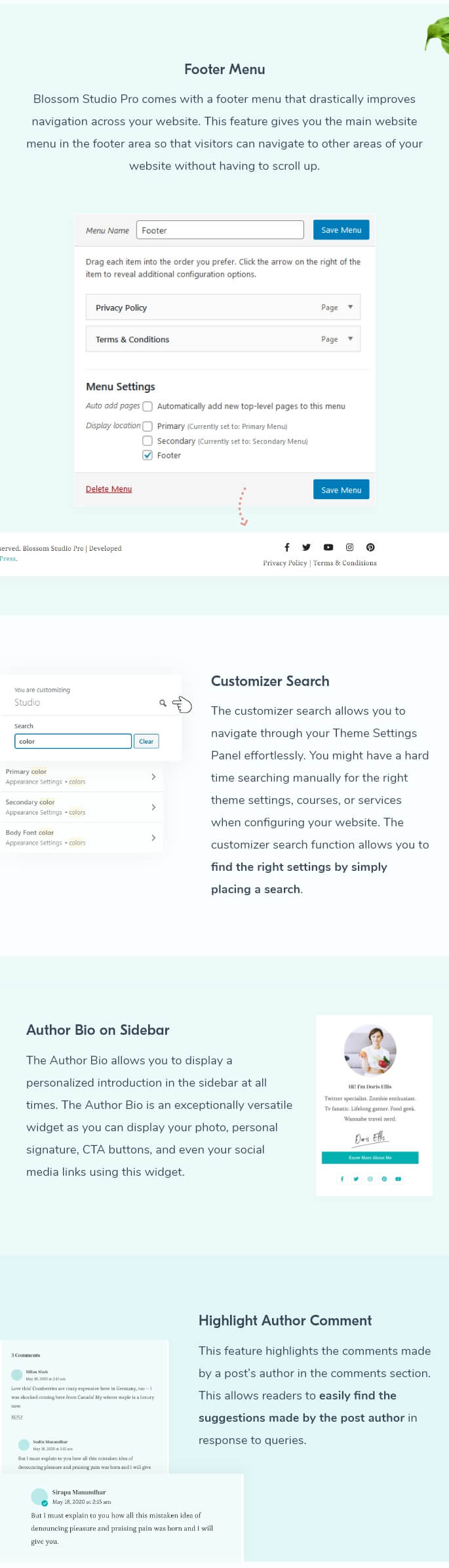 All our themes use the standard coding practices resulting in well-organized codes. Blossom Studio Pro features clean and well-commented codes, so if you are a developer who prefers to work on the code level, you should easily find your way around this theme.