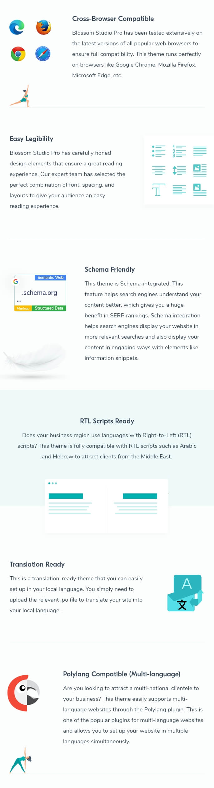Does your business region use languages with Right-to-Left (RTL) scripts? This theme is fully compatible with RTL scripts such as Arabic and Hebrew to attract clients from the Middle East.