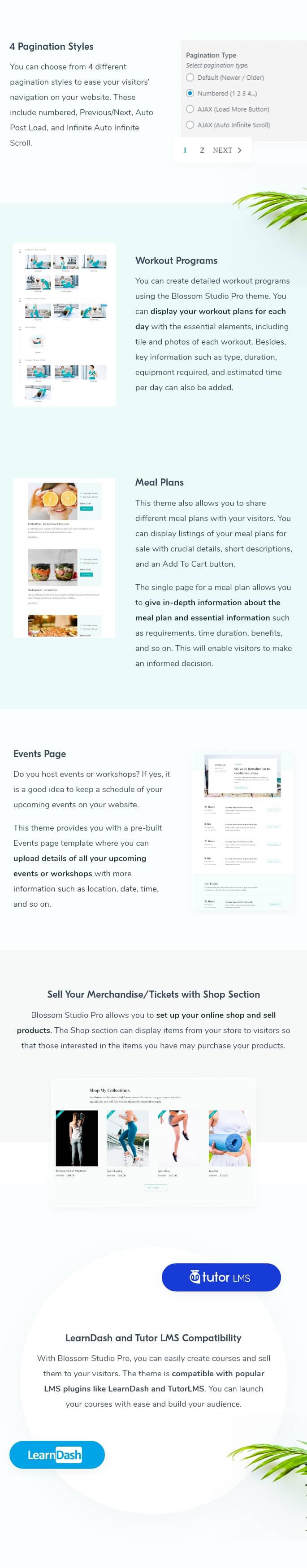 With Blossom Studio, you can easily create courses and sell them to your visitors. The theme is compatible with popular LMS plugins like LearnDash and TutorLMS. You can launch your courses with ease and build your audience.