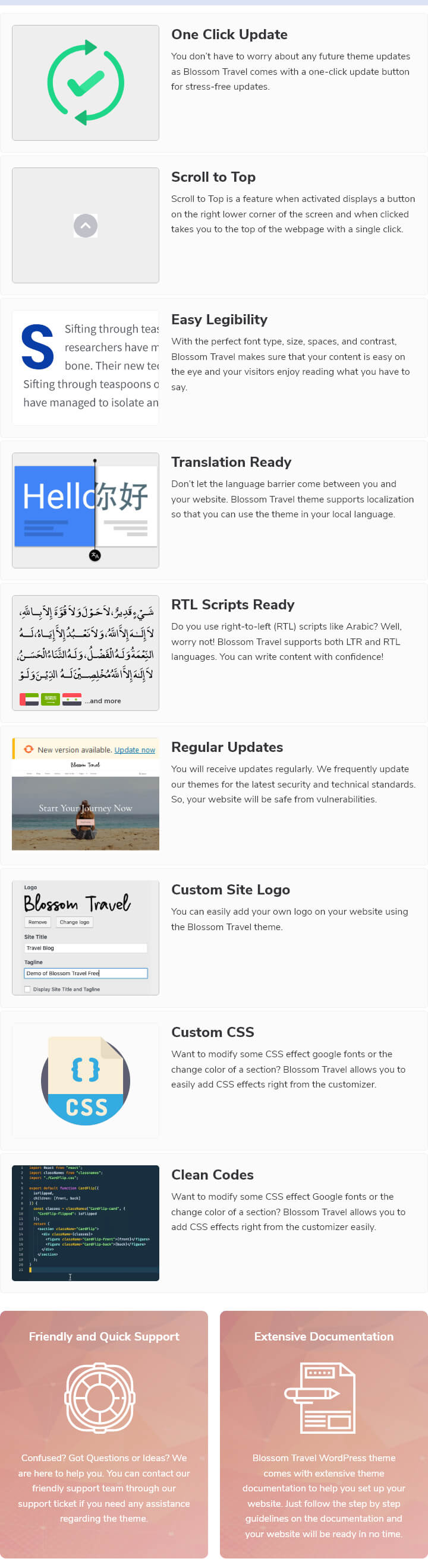 You don’t have to worry about any future theme updates as Blossom Travel comes with a one-click update button for stress-free updates.