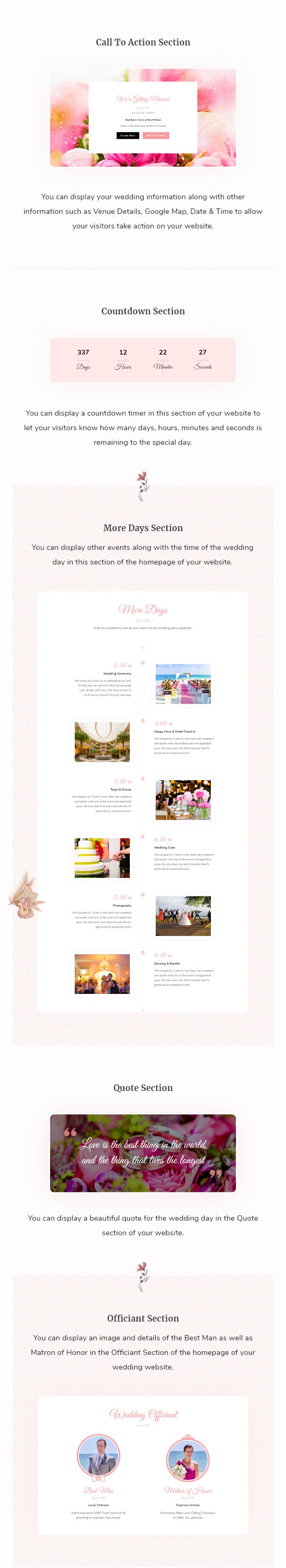 You can display other events along with the time of the wedding day in this section of the homepage of your website.