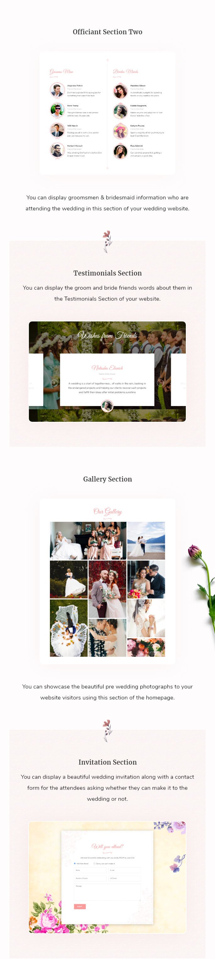 You can display the groom and bride friends words about them in the Testimonials Section of your website.