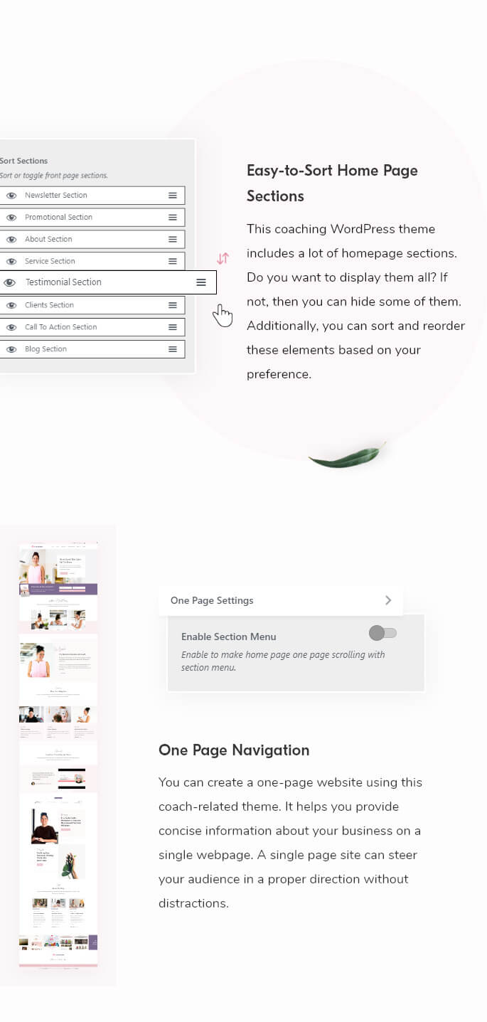 CoachPress includes a variety of top-notch features and customization options. It eases your process of creating an elegant, easy-to-use website. Let us take a brief look at each of its features: