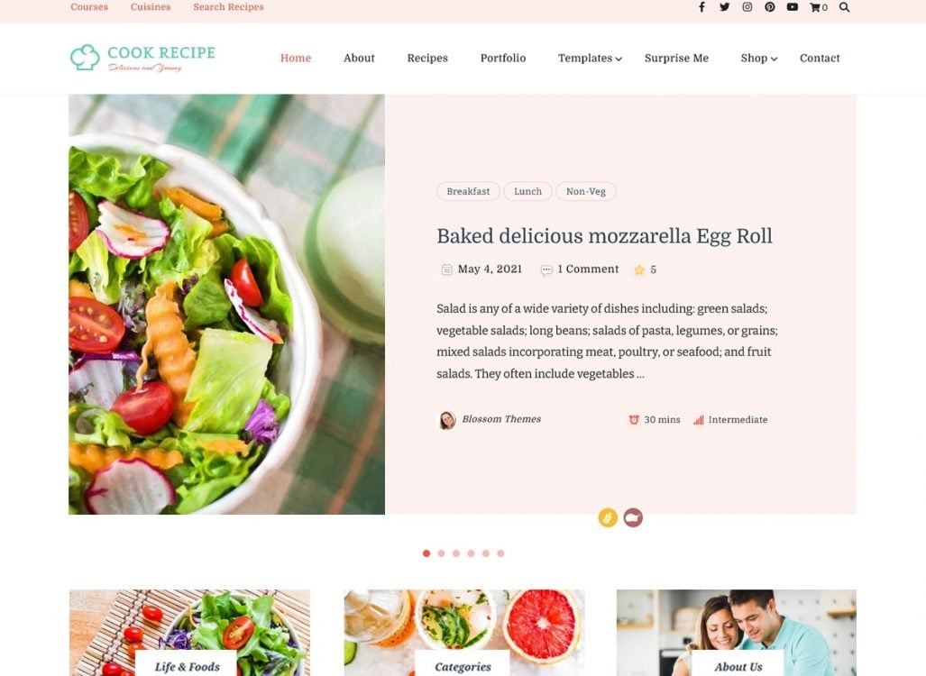 Cook Recipe is an elegant WordPress theme for food and recipe blogs. This theme is a perfect choice for aspiring bloggers. Its sleek design will give a professional impression and give an excellent user experience to your readers.