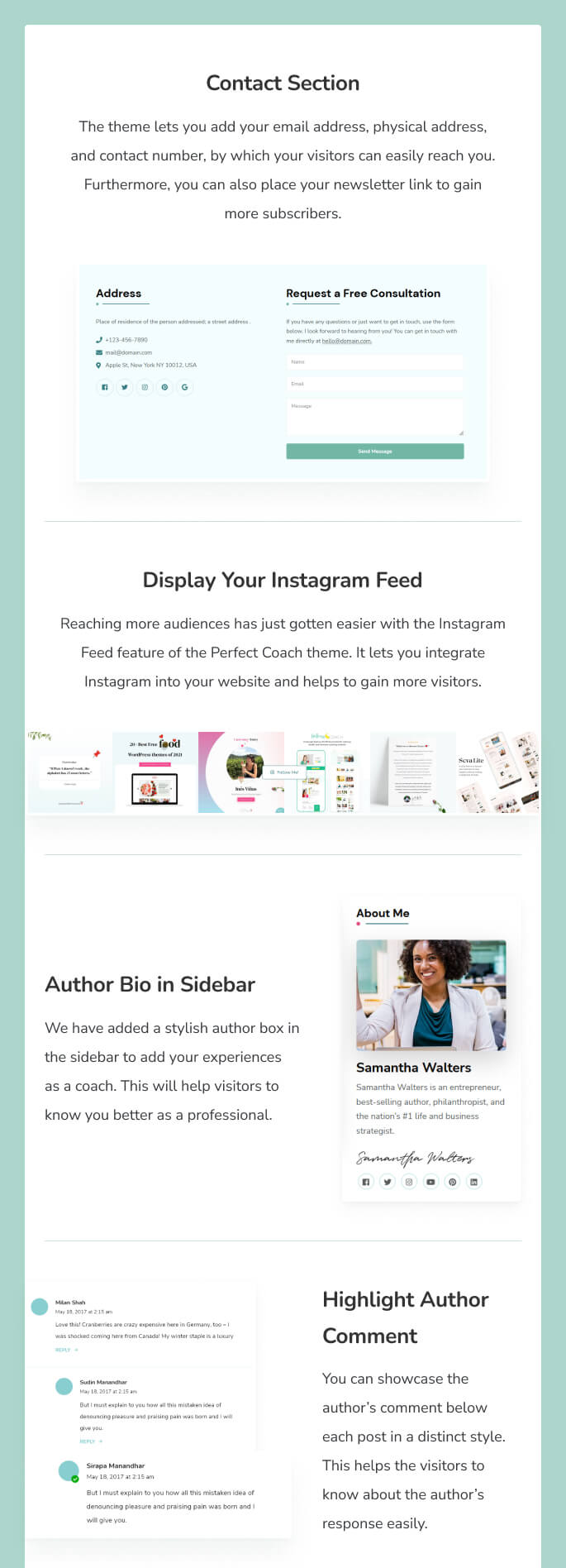 Reaching more audiences has just gotten easier with the Instagram Feed feature of the Perfect Coach theme. It lets you integrate Instagram into your website and helps to gain more visitors.