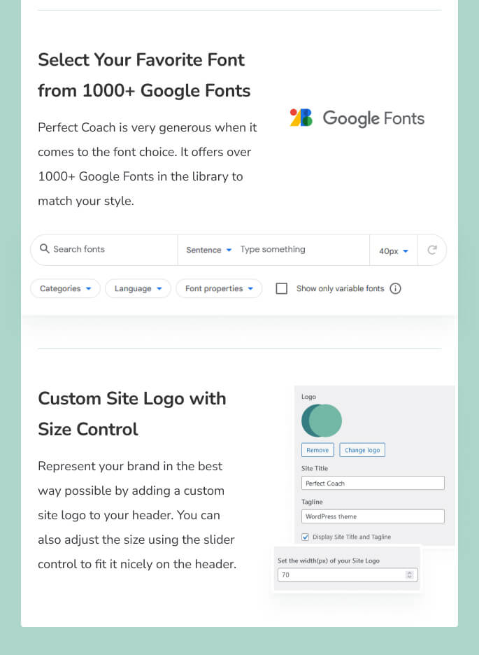Perfect Coach is very generous when it comes to the font choice. It offers over 1000+ Google Fonts in the library to match your style.