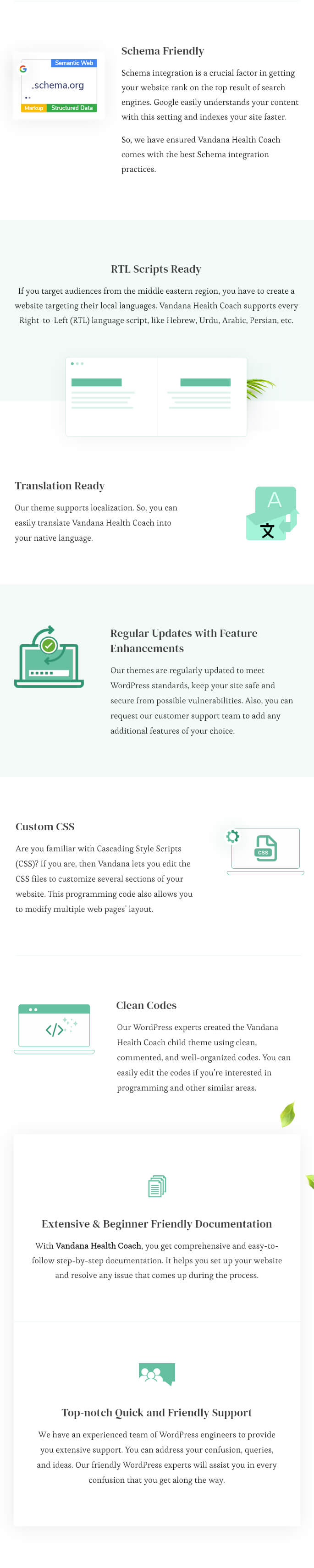 Our WordPress experts created the Vandana Health Coach child theme using clean, commented, and well-organized codes. You can easily edit the codes if you’re interested in programming and other similar areas.