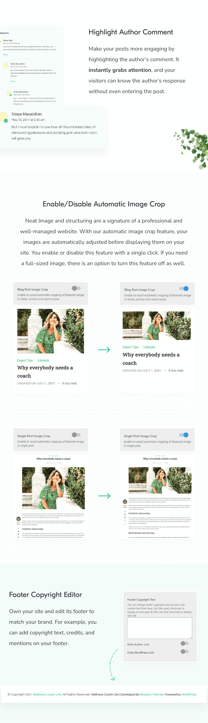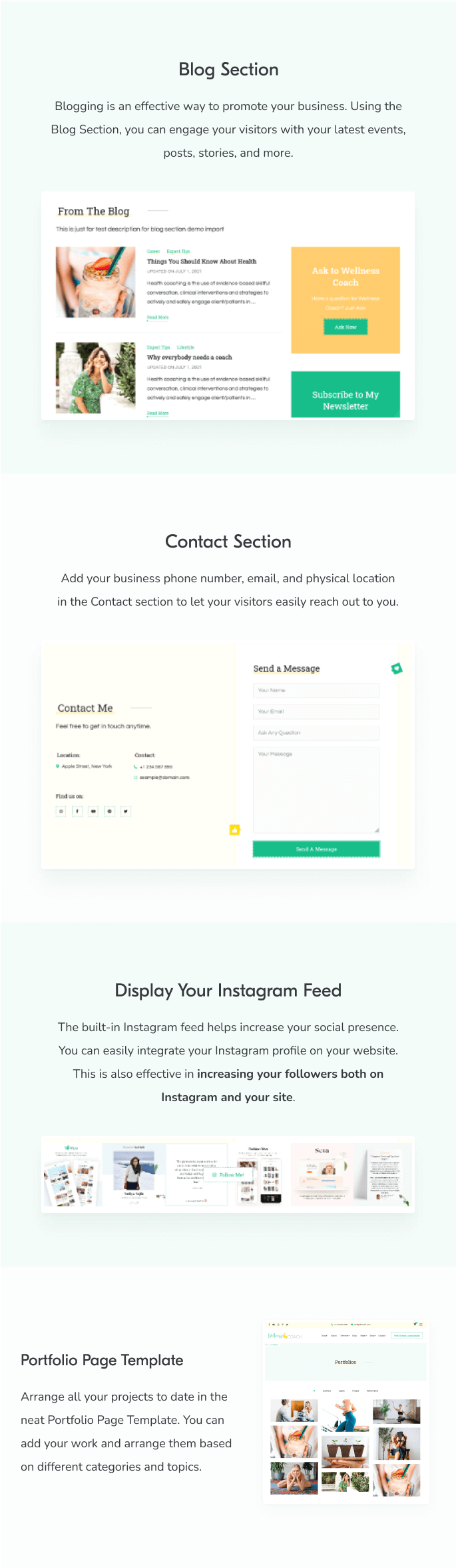 A comprehensive theme with all the features you will need to create your ideal coaching website. Best performance, faster speed, and better SEO are what best define the Wellness Coach lite theme. In addition, the theme ensures a higher ranking of your site on the SERPs, providing you an edge over your competitors.