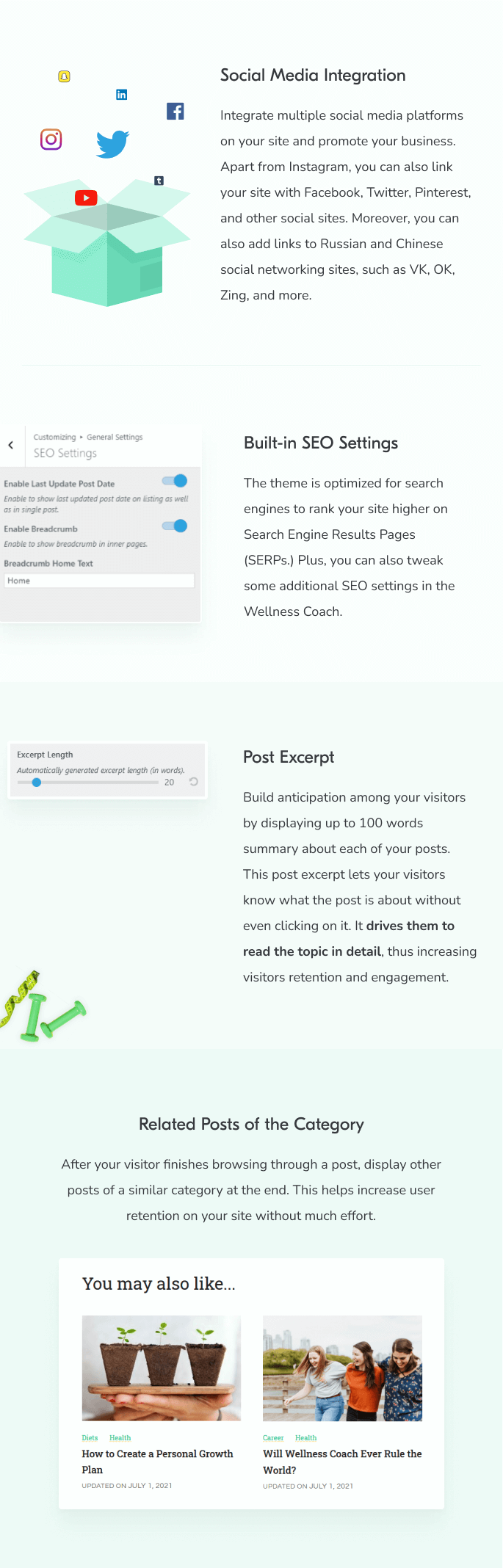 Wellness Coach Lite prioritizes advanced SEO practices to help you secure a higher rank on SERPs (Search Engine Results Pages). Plus, you can also tweak some additional SEO settings in the Wellness Coach Lite.