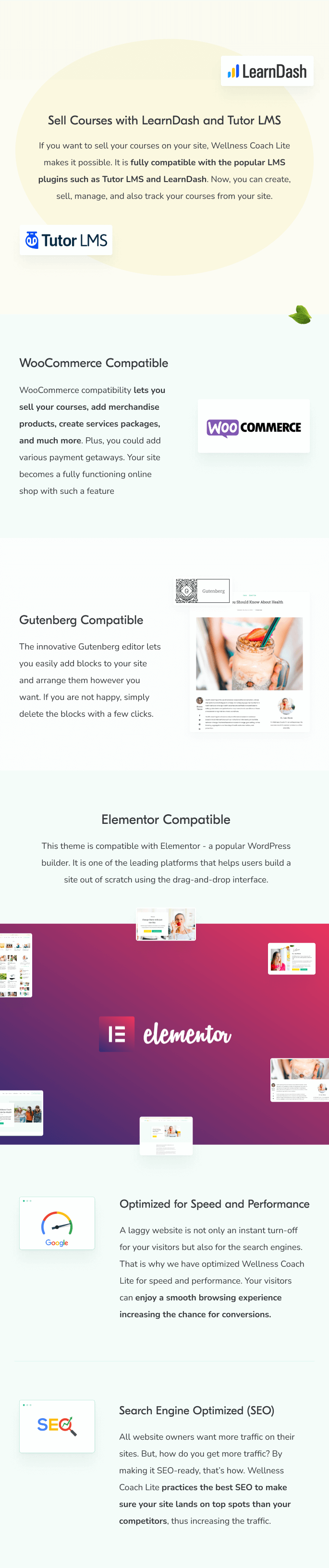 A laggy website is not only an instant turn-off for your visitors but also for the search engines. That is why we have optimized Wellness Coach Lite for speed and performance. Your visitors can enjoy a smooth browsing experience increasing the chance for conversions.